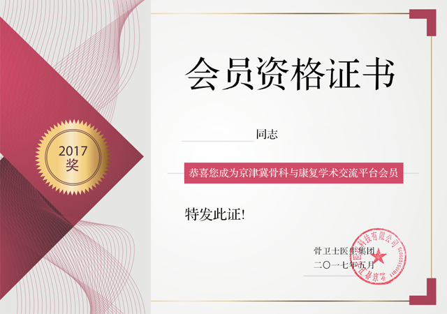 凡参加2017京津冀骨科及康复专业学术峰会的人员,可获得“京津冀骨科与康复学术交流平台会员资格认证”证书,会员可享受: