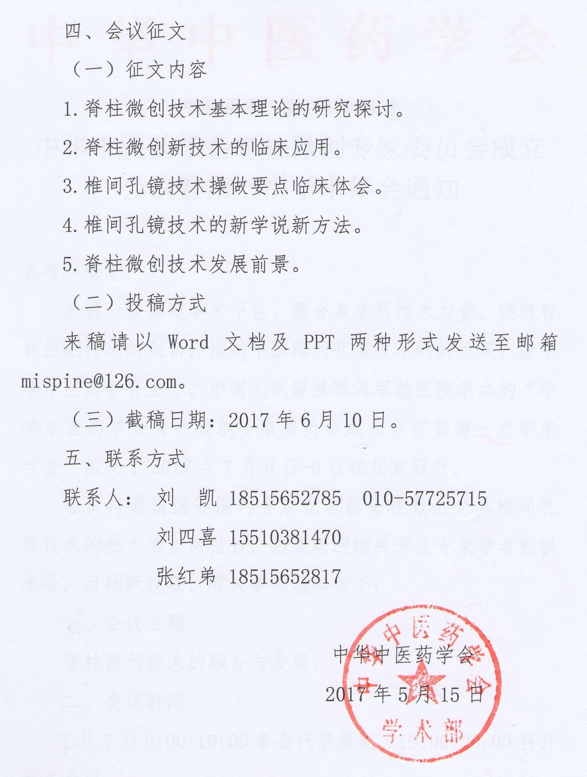 中华中医药学会脊柱微创专家委员会成立会议暨第一次学术年会通知