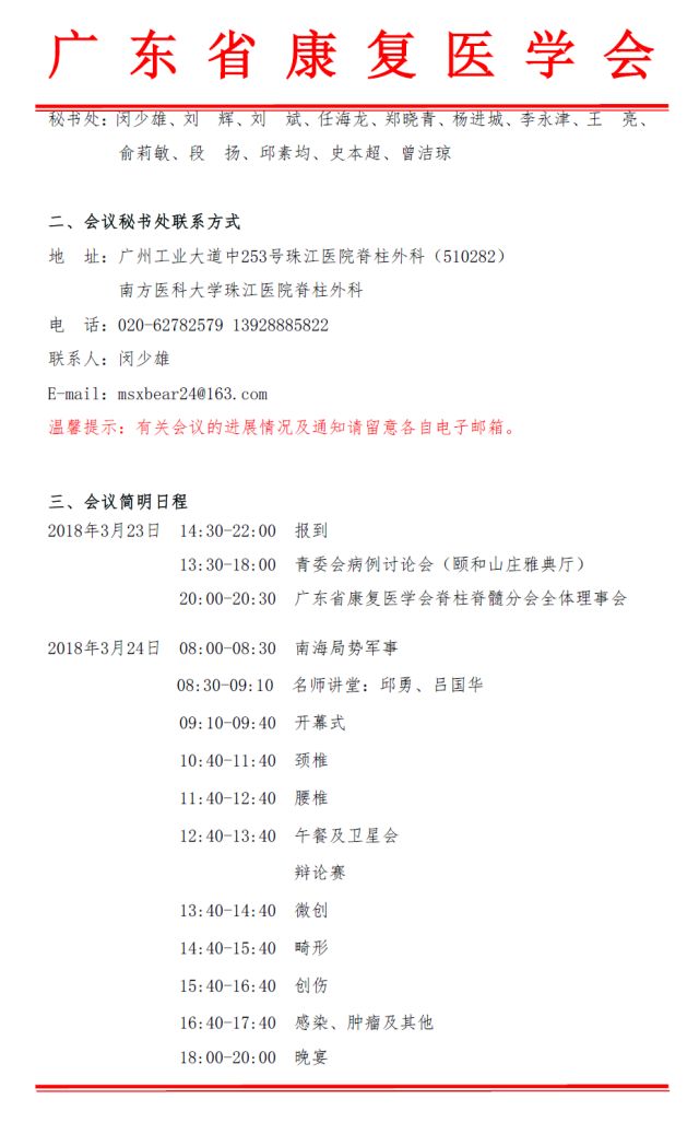 第五届广东省康复医学会脊柱脊髓专业委员会学术年会即将召开
