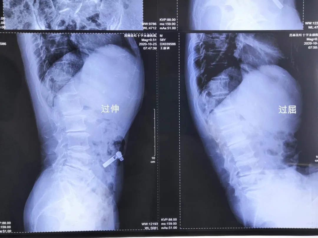 现病史:患者慢性腰腿痛病史10年,间断发作,多次在当地医院行保守治疗,近1个月疼痛加重,以右下肢放射痛为主,右小腿前外侧为重,不能行走,影响睡眠。